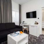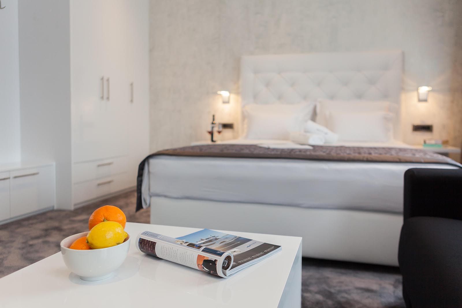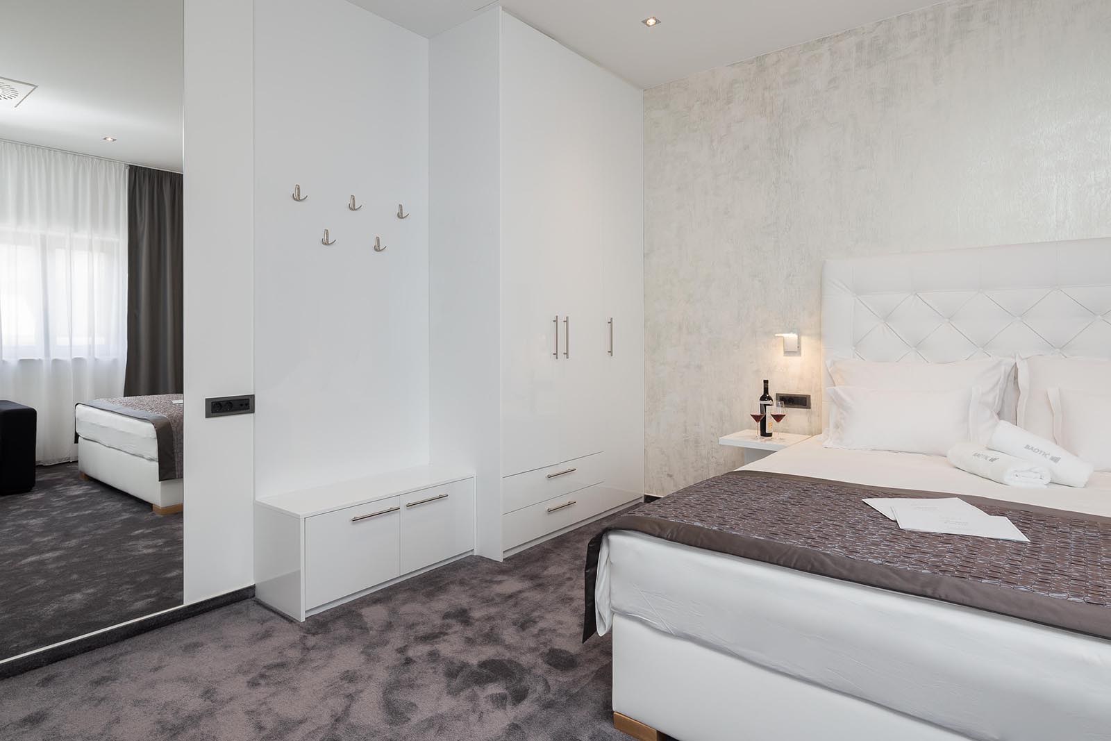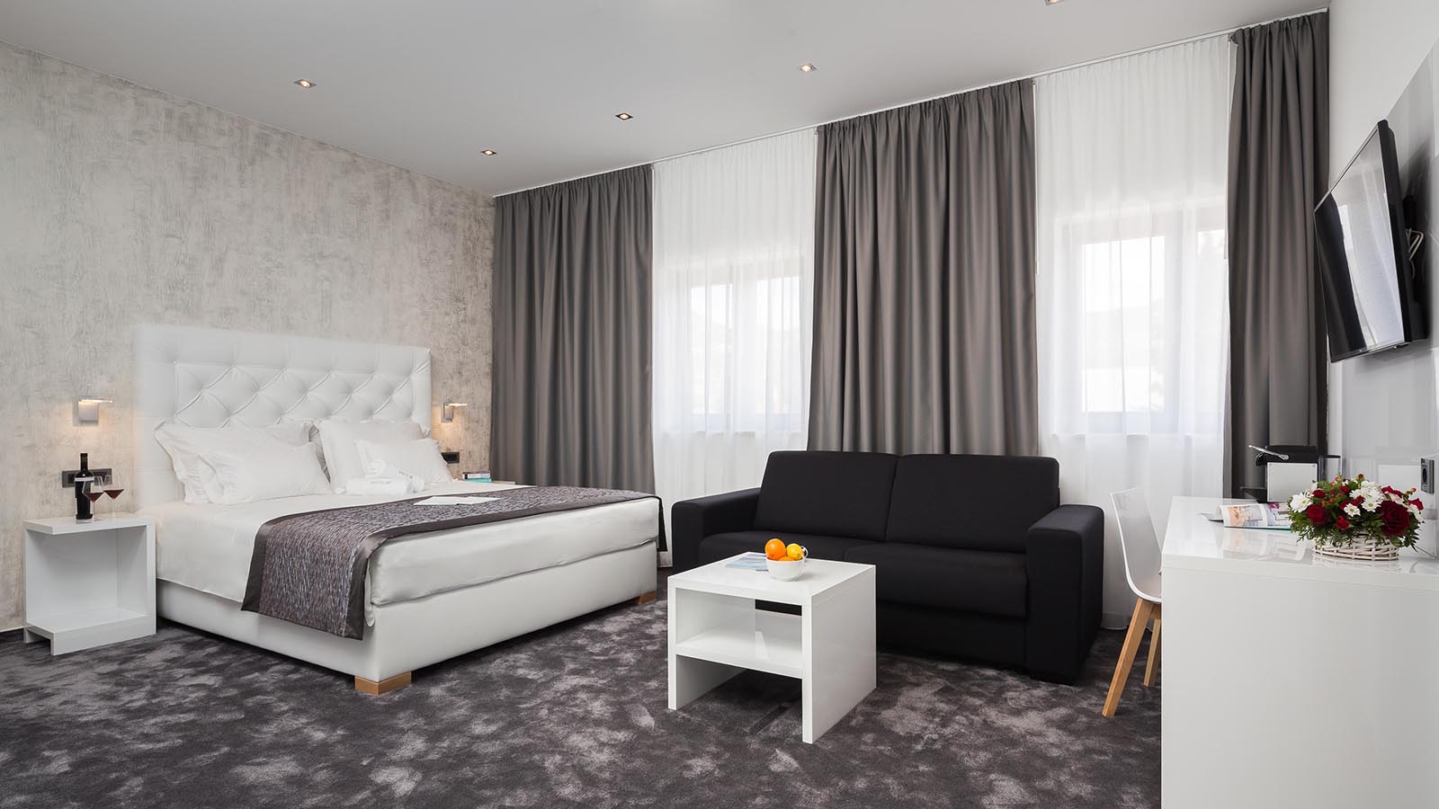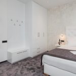 Jedna spavaća soba s King size krevetom, uz kupaonicu s toaletom i tuš kabinom, te kaučem na razvlačenje i klima uređajem.