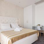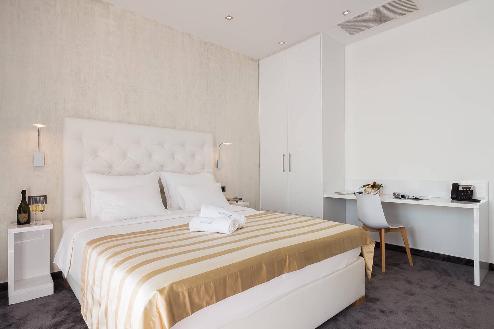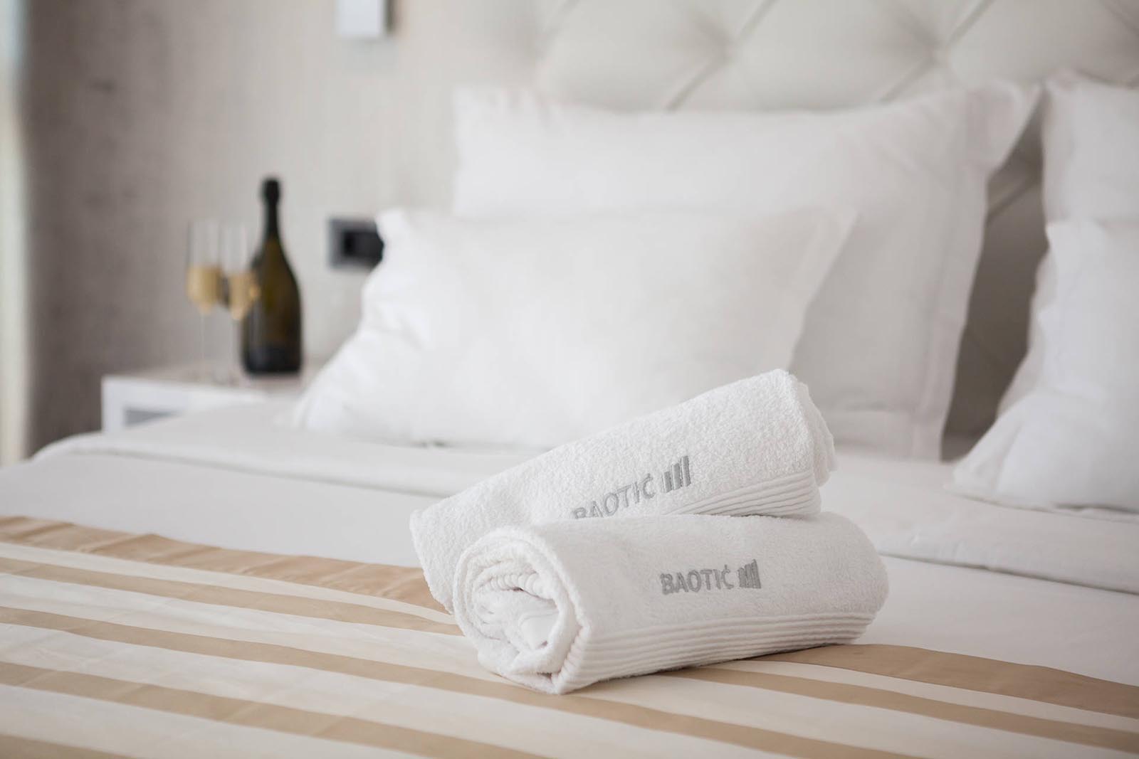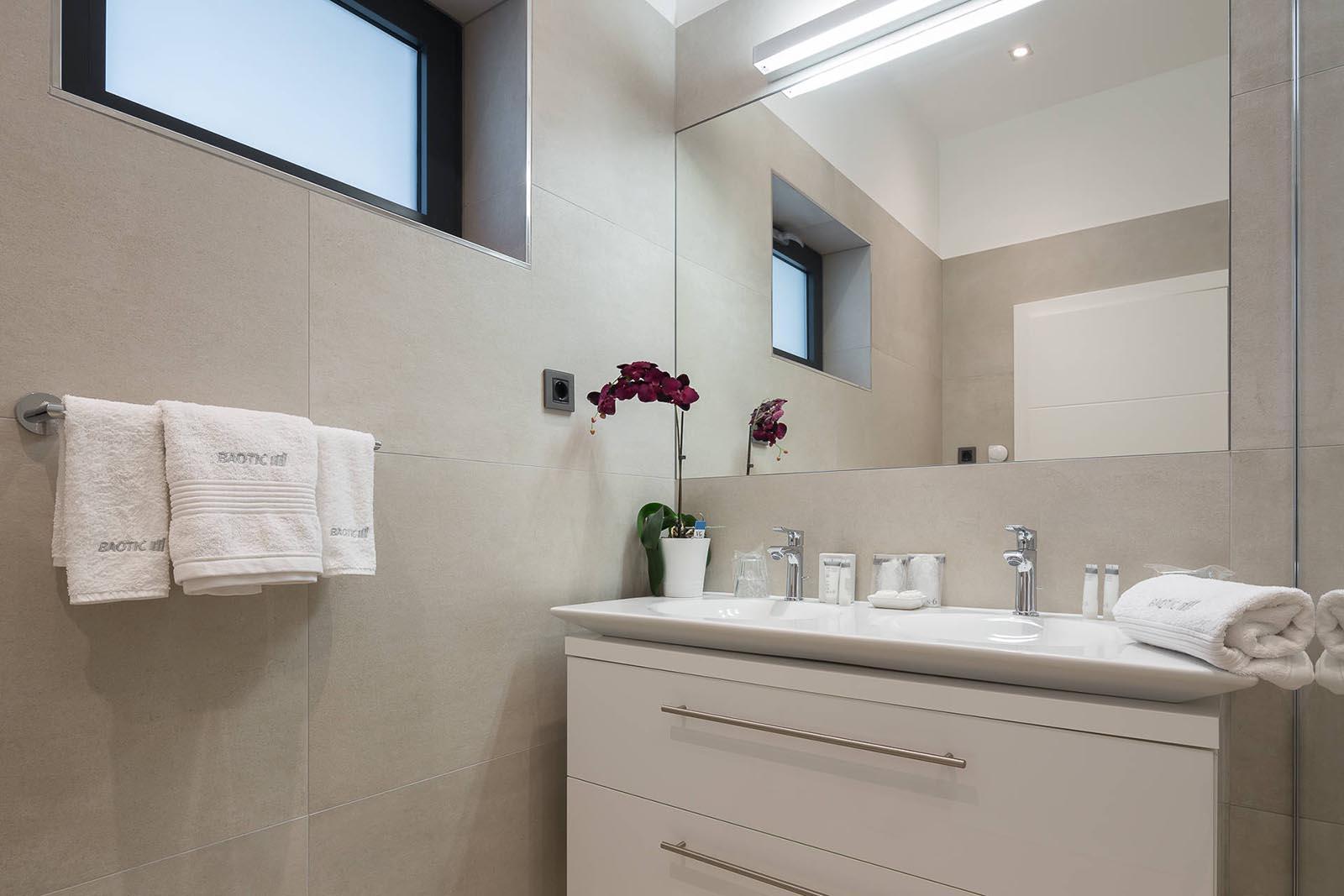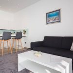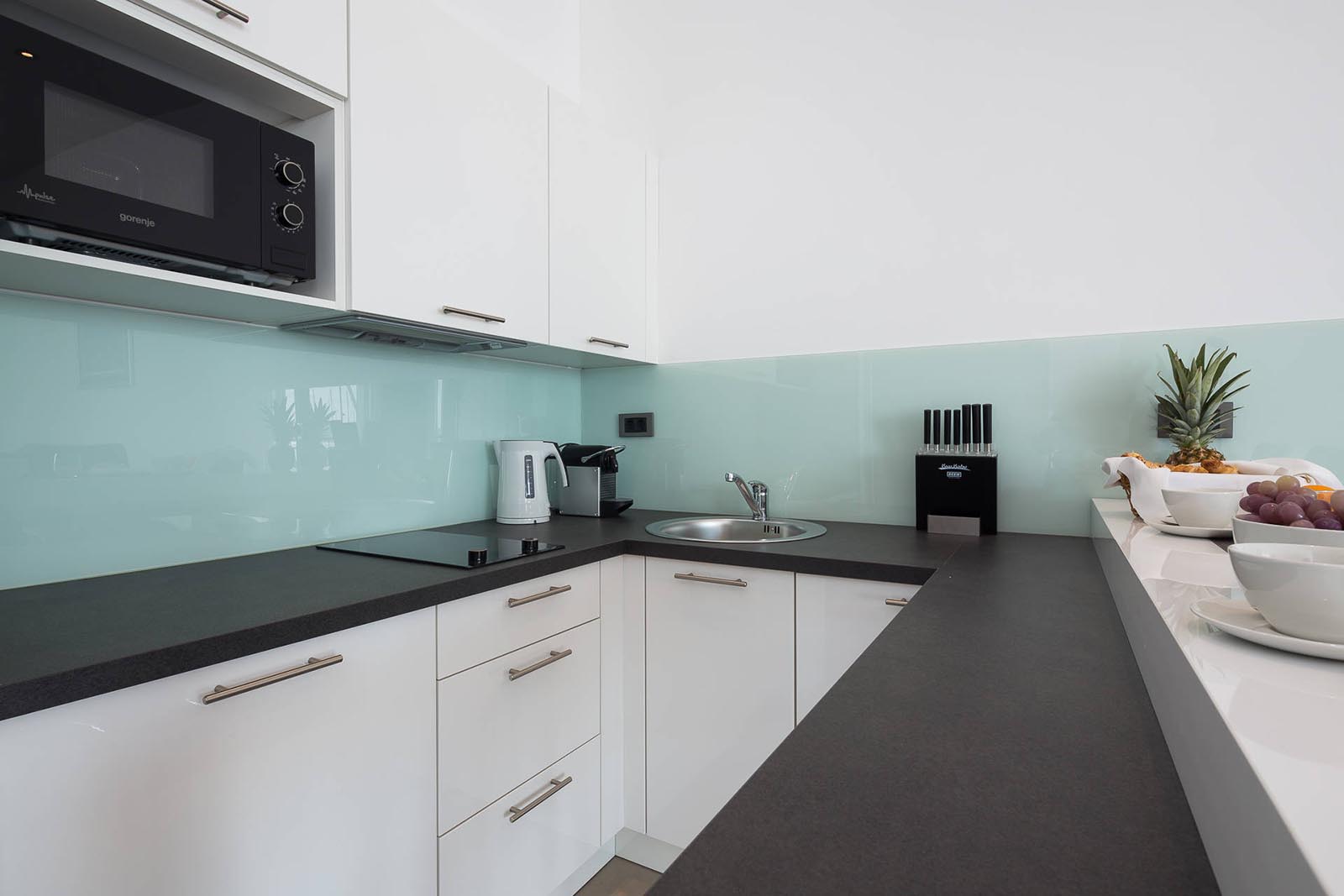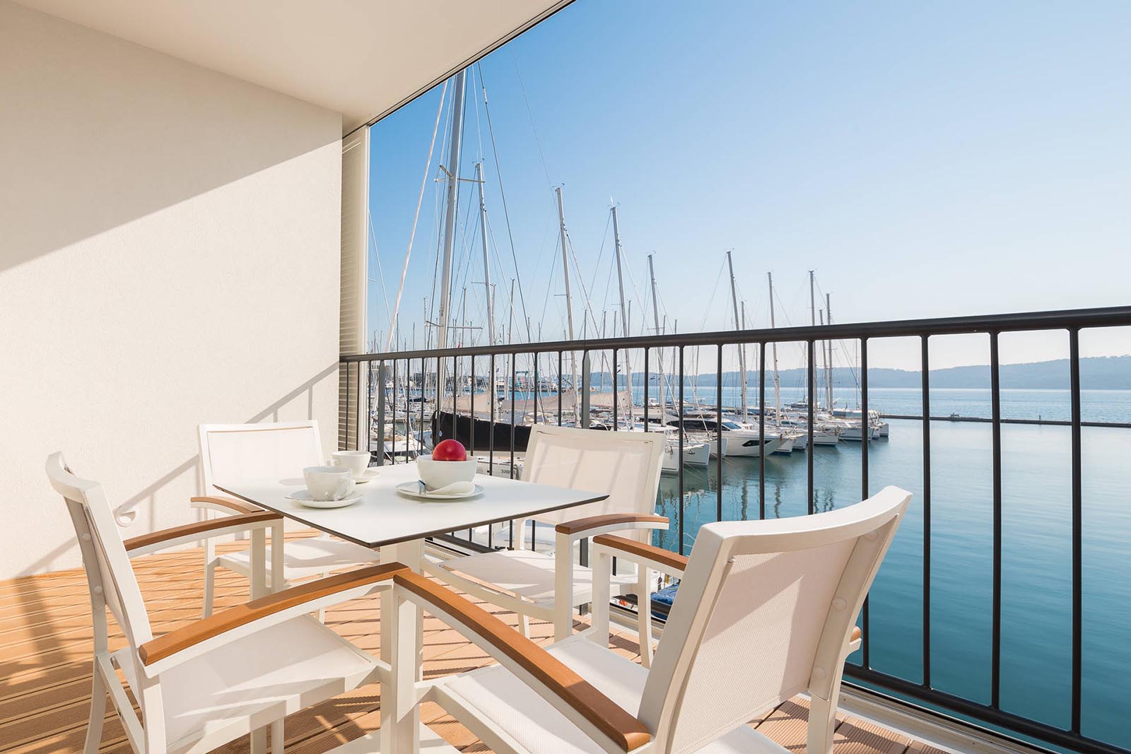 Spavaća soba s King Size krevetom, jedna kupaonica s toaletom i tuš kabinom. Uključena kuhinja, prostor za blagovanje, te dnevni boravak s kaučem na razvlačenje, klima uređajem, balkonom i ležaljkama za sunčanje.